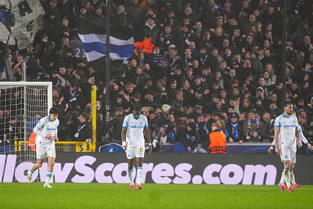 Leonardo BALERDI of Olympique de Marseille, and Geoffrey KONDOGBIA of Olympique de Marseille looks dejected during the UEFA Champions League match between Brugge and Marseille at Jan Breydel Stadium on January 28, 2026 in Brugge, Belgium. (Photo by Hugo Pfeiffer/Icon Sport via Getty Images)