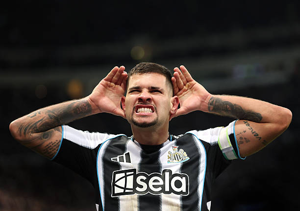 Bruno Guimaraes of Newcastle celebrates after scoring the first Newcastle goal during the Premier League match between Newcastle United and Crystal Palace at St James’ Park on January 04, 2026 in Newcastle upon Tyne, England.
