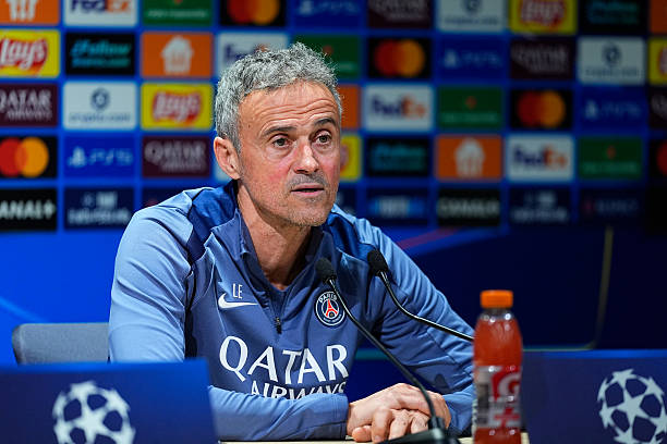 Luis Enrique Coach of Paris Saint-Germain F.C. attends the Paris Saint-Germain Press Conference on January 27, 2026, Campus PSG, Poissy, France.)